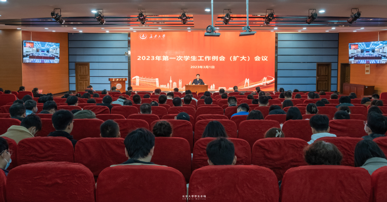 3月1日上午,2023年第一次学生工作例会(扩大)会议召开。会议对2023年学生工作和近期重点工作进行了整体部署和安排。校党委副书记黎开谊出席会议并讲话,会议由学工部/武装部部长张骞文主持。