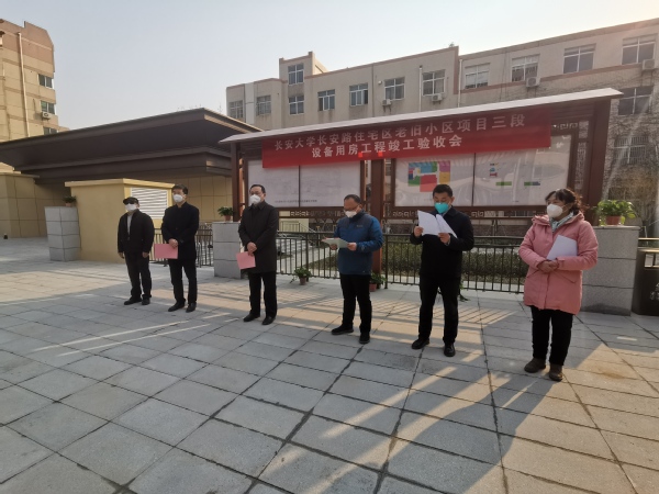 12月30日下午,bat365长安路住宅区老旧小区项目三段设备用房工程验收会在项目室外广场召开,副校长王建伟,学校建设工程质量安全监督小组成员单位校办、计财处、审计处、国资处、后勤处、保卫处、基建处(南校区住建办)等部门相关负责人,学校建设工程质量安全监督小组特聘专家,项目勘察、总承包、监理、地基检测、全过程审计、沉降观测、消防检测及建设单位等相关人员20余人出席验收会。会议由基建处(南校区住建办)处长石瑞平主持。