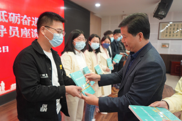 会上,黎开谊向新入职辅导员赠送书籍《辅导员谈心谈话六讲》。8位新入职辅导员代表依次发言,与会人员与新入职辅导员展开讨论交流。