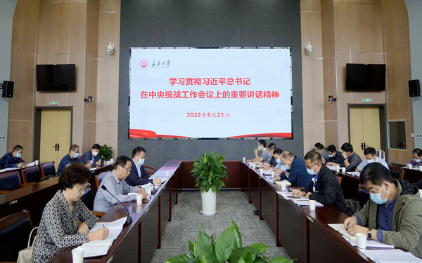 徐引正领学了习近平总书记在中央统战工作会议上的重要讲话精神。他强调,习近平总书记在中央统战工作会议上的重要讲话,阐明了新时代统战工作一系列重大理论和实践问题,为做好新时代统战工作指明了前进方向、提供了根本遵循。要完整全面准确理解习近平总书记关于做好新时代统一战线工作的重要思想,准确把握新时代爱国统一战线的历史方位和重要使命,切实增强做好新时代统一战线工作的政治自觉、思想自觉和行动自觉。要学习贯彻落实好中央统战工作会议精神,加强党对统战工作的全面领导,充分发挥学校统一战线工作领导小组作用,加强党外知识分子思想政治引领,引导统战成员积极投身学校“双一流”建设,助力学校高质量发展。要以铸牢中华民族共同体意识为主线,坚持为党育人、为国育才,全面落实立德树人根本任务,培育堪当民族复兴大任的时代新人。要进一步加强党外代表人士和党外干部队伍建设,为统一战线各领域输送优秀人才,引导广大统战成员围绕学校改革发展大局,积极建言献策,广泛凝聚共识、凝聚人心、凝聚智慧、凝聚力量,形成大统战工作格局,不断巩固和发展新时代爱国统一战线,以实际行动迎接党的二十大胜利召开。