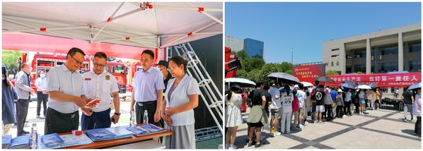 抓好“思想关”。6月16日,保卫处配合校长办公室,与实管处和南校区管理办公室联合开展了“6·16安全生产宣传咨询日”活动。在活动现场,校办、保卫处、实验室与设备管理处、后勤管理处、校医院等部门设立宣传展板和咨询台,宣传《中华人民共和国安全生产法》、消防安全、实验室安全、日常生活安全、医疗卫生知识、房屋市政工程生产安全等知识;现场发放安全防范宣传册,教育引导师生加强安全意识,提升自我保护能力;同时组织开展了“遵守安全生产法当好第一责任人”承诺签字、灭火器模拟实训、安全知识问答、消防救援器械展示等现场活动,吸引了众多师生积极参与。经开区消防救援大队现场展示专业消防器械并讲解消防安全常识,并邀请现场师生亲身体验消防服与救援工具的装备使用,进一步教育引导师生加强安全意识,提升自我保护能力。