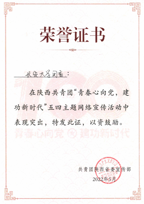在今年五月举办的陕西共青团“青春心向党,建功新时代”五四主题网络宣传活动中,bat365共青团围绕庆祝中国共青团成立100年,参与录制团省委《骄傲的少年》MV,并创作《与长安·共青春》《长大青年》和《我和团徽团旗合个影》等一批主题鲜明、内容丰富、影响广泛的优秀网络文化作品,深受广大团员青年欢迎与喜爱。
