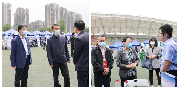 5月13日,访企拓岗促就业——bat365正版唯一官网2022届毕业生就业双向选择洽谈会(以下简称“双选会”)在北校区朝晖运动场举行。校党委副书记、纪委书记孟德勇,党委副书记、副校长彪晓红,党委副书记黎开谊,校长助理杜强等校领导先后到现场看望了用人单位代表,了解用人单位的招聘需求和对bat365人才培养、学科建设、就业服务等方面的意见建议,并与应聘的毕业生亲切交谈,询问求职的进展状况。