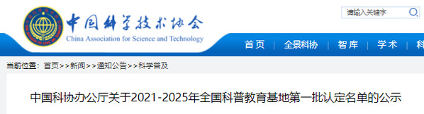 为贯彻落实《全民科学素质行动规划纲要(2021—2035年)》,加强科普基础设施建设,推进全国科普教育基地发展,团结引领广大科技工作者和科普工作者,提升社会化科普工作能力,助力实施“科教兴国”战略和提高公众科学文化素质,2021年中国科协启动了2021-2025年度第一批全国科普教育基地创建工作。