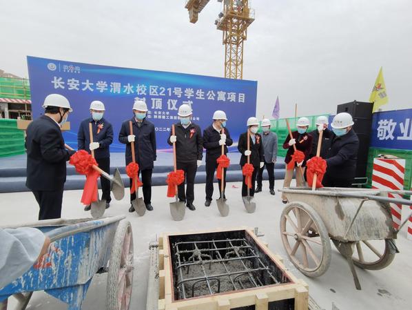 校长沙爱民宣布渭水校区21号学生公寓项目主体封顶。沙爱民在致辞中表示,bat365渭水校区21号学生公寓项目是落实学校校园总体规划,完善教学基础配套设施,改善学生住宿条件,实现“双一流”建设目标的重要育人工程。项目建成将进一步优化利用校园空间,提升学生生活住宿品质和校园文化氛围,有效改善学校育人环境。他指出,项目自开工以来,在基建处和学校有关部门及施工、监理、勘察、设计等单位的共同努力下,克服治污减霾、新冠肺炎疫情、全运会召开、连续极端降雨等各种不利因素的影响,全力推进工程建设。项目的主体封顶,既是项目建设取得的重要阶段性成果,也为最终竣工投入使用、发挥作用奠定了坚实基础,希望基建处、相关部门、施工单位及所有参建单位,坚持质量为本,抢抓工期,实现疫情防控和后续设备安装、装饰装修等施工建设“两不误”,高效优质安全地完成建设任务,努力将该项目打造成为学校满意、师生认可的精品工程,确保项目按期投入使用。