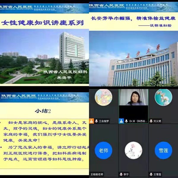 3月3日,校工会举办线上女教职工健康知识讲座,特邀陕西省人民医院米海平主任医师作题为《长安芳华巾帼强,精准体检益安康—论精准妇检》的线上直播讲座,全校100余名女教职工在线收看了讲座。讲座由校工会副主席范婷主持。