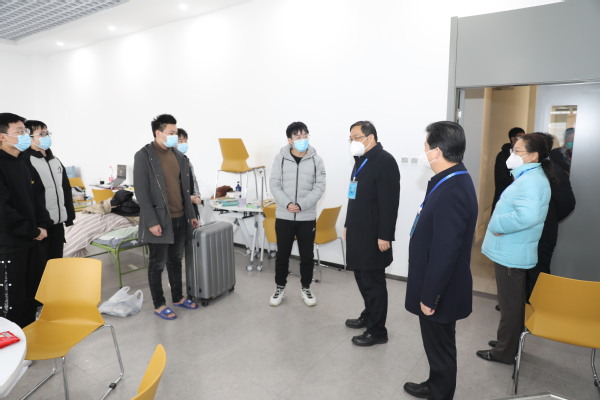 校长沙爱民在北校区学生宿舍、鸿远教学楼、明远教学楼、修远教学楼等临时隔离点,查看了解学生住宿条件及生活物资保障情况,听取辅导员及工作人员的工作汇报,与学生亲切交谈并详细了解学生的生活学习情况。他要求工作人员及时了解学生需求,加强组织协调,尽全力做好学生的生活及学习保障。沙爱民勉励同学们在特殊时期要团结互助共克时艰,“要把自己的生活、学习安排好,有什么困难就提出来,学校在政策条件允许的情况下,一定会尽力满足大家的需求。我们一直跟你们在一起,坚持就是胜利”。