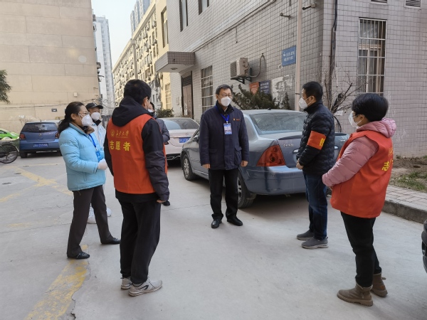 校党委书记陈志坚到南校区各工作片区查看了解疫情防控工作情况,听取工作人员及志愿者工作汇报,详细询问目前疫情防控工作中存在的问题和困难,并对住宅区内的蔬菜供应、老年人就医、日常用品需求等情况进行了解。他指出,婴幼儿奶粉等日用品虽然是个别家庭的需求,却是急需解决的大问题,他要求工作人员及时收集群众困难,学校会积极想办法协调解决。陈志坚充分肯定了各工作片区的疫情防控工作,鼓励大家继续保持良好的工作作风,坚决打赢这场疫情防控校园阻击战歼灭战。