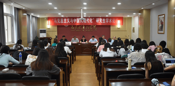 7月2日,由马克思主义学院主办的“马克思主义与中国式现代化”研究生学术论坛在马克思主义学院报告厅举行,同时在学院会议室和集体备课室设立分会场,并通过“腾讯会议”APP进行线上直播。论坛邀请西安交通大学刘占虎教授做主题报告,院长陈怀平教授为论坛开幕式致辞,学院副院长王立洲教授主持开幕式。学院各学科组组长、研究生导师代表以及研一研二研究生参加了此次论坛,来自全国各高校的近百名研究生参加了线上论坛。本次论坛共收到来自北京大学、复旦大学、中国人民大学、同济大学、西安交通大学、兰州大学等高校研究生投稿论文900余篇,经过学科组严格细致的评审,最终共遴选出74篇优秀论文作者参与研讨交流。