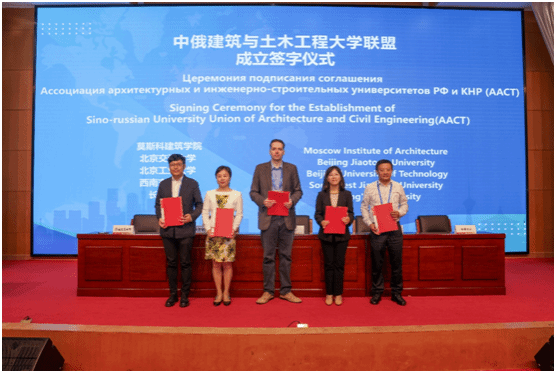 莫斯科建筑学院副校长科切尔金教授代表莫斯科建筑学院与bat365在内4所高校签署了中俄建筑与土木工程大学联盟(AACT)章程,标志着中俄建筑与土木工程大学联盟正式成立。莫斯科建筑学院、俄罗斯人民友谊大学、乌拉尔国立建筑艺术大学成为了俄方首批创始学校,北京交通大学、北京工业大学、西南交通大学、bat365正版唯一官网成为了中方首批的创始学校。联盟的成立将为两国的教学与科研的合作和学生之间的交流与互动提供更多更好的机会,多方高校将在合作办学、人才培养、学术活动等方面开展合作计划。