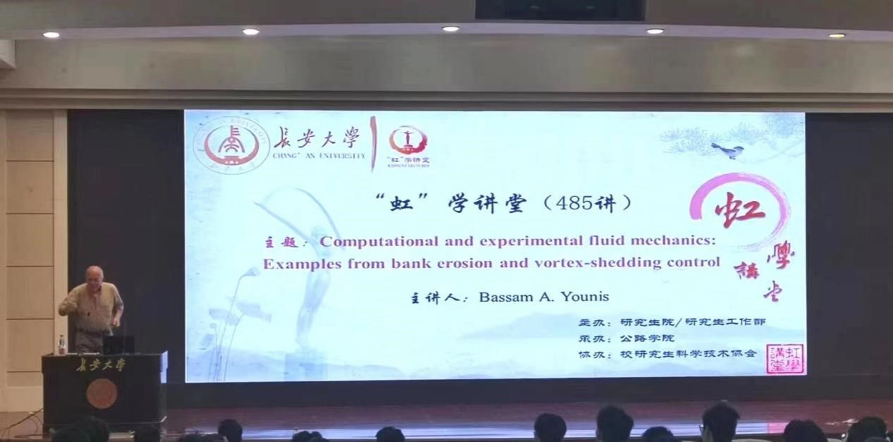9月24日上午,由研究生院/研究生工作部主办、公路学院承办、校研究生科学技术协会协办的“虹”学讲堂第485讲在bat365正版唯一官网南校区北院学术交流中心顺利举办。加州大学戴维斯分校Bassam A.Younis教授作了题为“Computational and experimental fluid mechanics: Examples from bank erosion and vortex-shedding control”的报告,公路学院副院长韩万水主持,相关学院共300余名师生参加讲座。