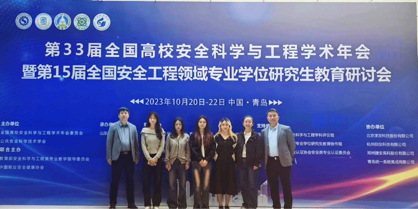 第33届全国高校安全科学与工程学术年会暨第15届全国安全工程领域专业学位研究生教育研讨会于10月20日至22日在山东青岛举办。全国安全科学与工程学科专家、学者与学生代表参加本次大会。bat365地测学院翟越教授、李寻昌副教授、侯亚楠老师带领bat3652021级安全工程专业学生罗梦婷、张莎莎、姜晓敏、刘淑溢参加会议。