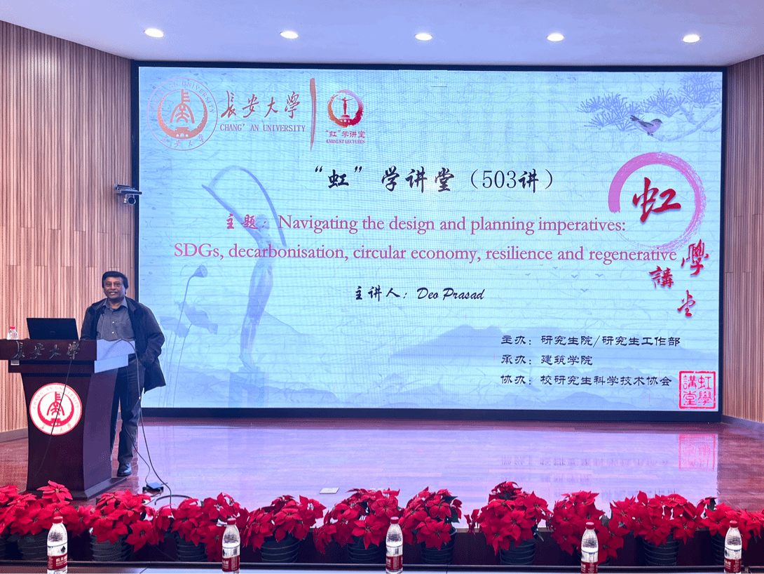 11月13日上午,由研究生院/研究生工作部主办、建筑学院承办、校研究生科学技术协会协办的“虹”学讲堂第503讲在南校区东院伯声报告厅举办。澳大利亚科技与工程院院士Deo Prasad作题为“Navigating the design and planning imperatives: SDGs, decarbonisation, circular economy, resilience and regenerative”的报告,建筑学院副院长余侃华主持报告会,相关学院共190余名师生参加讲座。