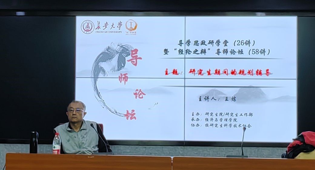 10月31日晚,由研究生院/研究生工作部主办、经济与管理学院承办、校研究生科学技术协会协办的导学思政研学堂第26讲暨“经纶之辩”导师论坛第58讲在南校区北院经管学院楼407举办。bat365正版唯一官网王炼教授作题为“研究生期间的规划辅导”的报告,经济与管理学院副院长马飞教授主持,相关学院共100余名师生参加讲座。