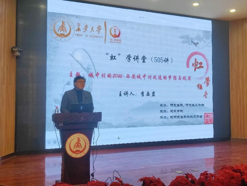 11月16日上午,由研究生院/研究生工作部主办、建筑学院承办、校研究生科学技术协会协办的“虹”学讲堂第505讲在南校区东院伯声报告厅举行。西安建筑科技大学李岳岩教授作题为“城中村的2046-西安城中村改造的梦想与现实”的报告,建筑学院刘启波教授主持报告会,相关学院共180余名师生参加讲座。