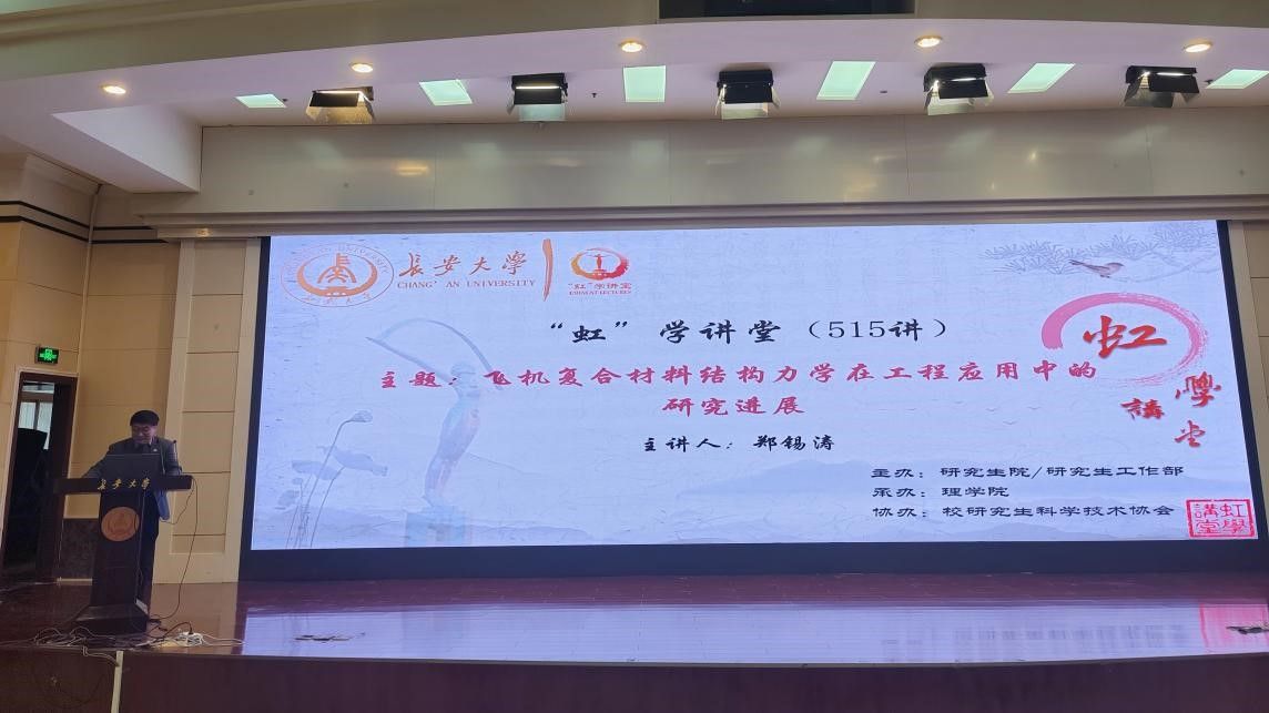 11月28日下午,由研究生院/研究生工作部主办、理学院承办、校研究生科学技术协会协办的“虹”学讲堂第515讲在南校区北院学术交流中心举办。西北工业大学郑锡涛教授作题为“飞机复合材料结构力学在工程应用中的研究进展”的报告,理学院党委副书记屈颖主持报告会,相关学院共200余名师生参加讲座。