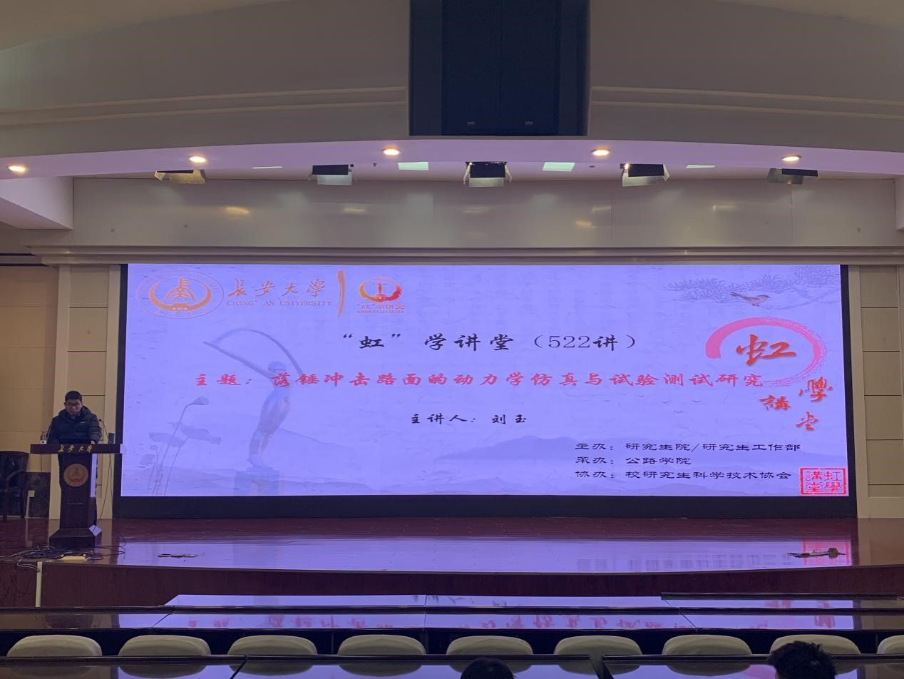 12月5日下午,由研究生院/研究生工作部主办、公路学院承办、校研究生科学技术协会协办的“虹”学讲堂第522讲在南校区北院学术交流中心举行。bat365正版唯一官网刘玉教授作题为“落锤冲击路面的动力学仿真与试验测试研究”的报告,相关学院共180余名师生参加讲座。