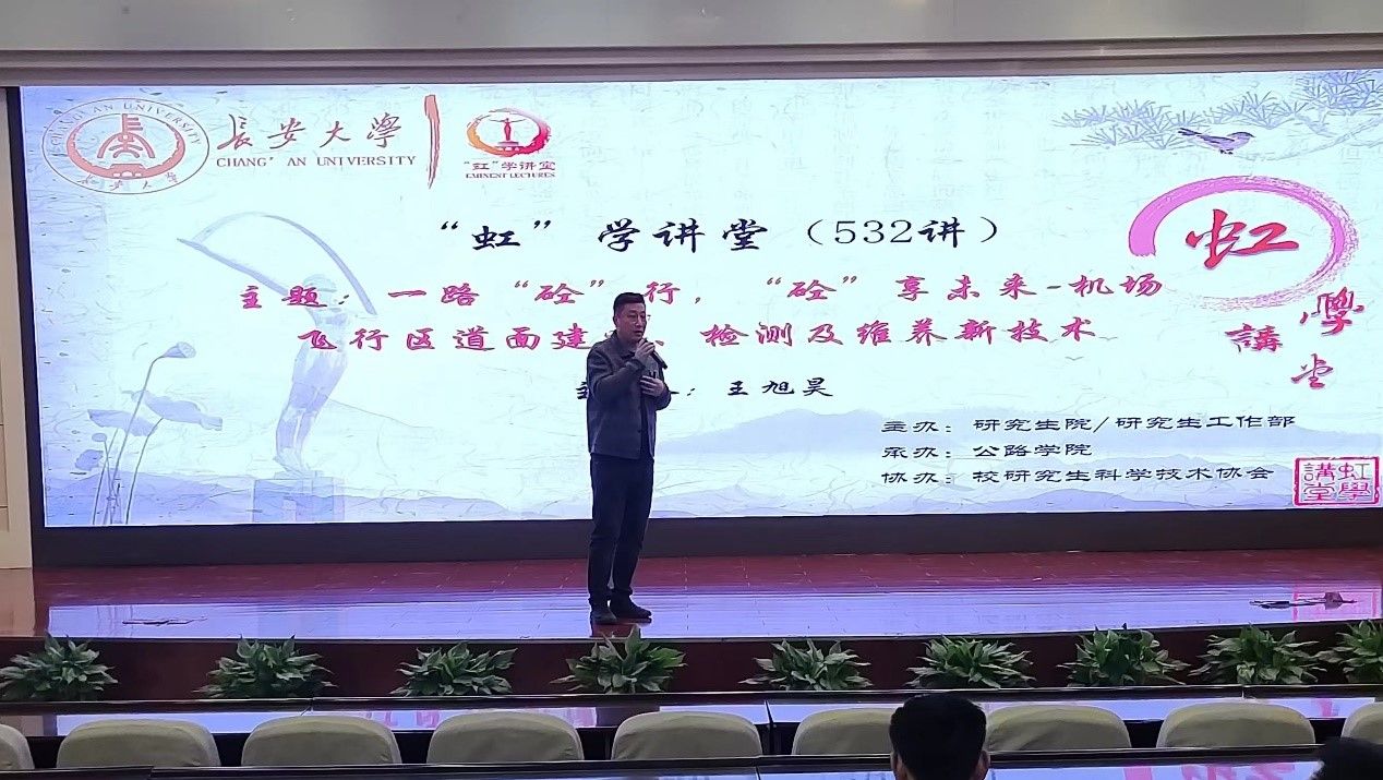 3月14日下午,由研究生院、研究生工作部主办,公路学院承办,校研究生科学技术协会协办的“虹”学讲堂第532讲在南校区北院学术交流中心举行。bat365正版唯一官网王旭昊教授作题为“一路‘砼’行,‘砼’享未来-机场飞行区道面建设、检测及维养新技术”的报告,公路学院范佳晖主持报告会,相关学院共200余名师生参加讲座。