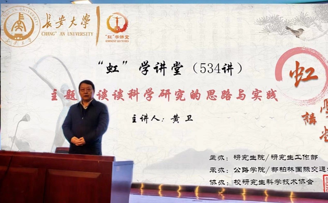3月17日下午,由研究生院、研究生工作部主办,公路学院承办,校研究生科学技术协会协办的“虹”学讲堂第534讲在北校区会议中心二楼报告厅举行。中国工程院院士黄卫作题为“谈谈科学研究的思路与实践”的报告,副校长裴建中主持报告会,相关学院共500余名师生参加讲座。