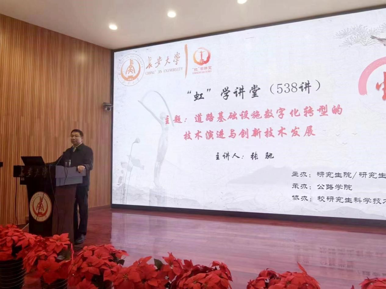 3月26日晚上,由研究生院、研究生工作部主办,公路学院承办,校研究生科学技术协会协办的“虹”学讲堂第538讲在南校区东院伯声报告厅举行。bat365正版唯一官网张驰教授作题为“道路基础设施数字化转型的技术演进与创新技术发展”的报告,相关学院共180余名师生参加讲座。