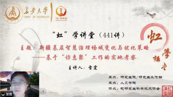 4月7日晚,由研究生院/研究生工作部主办、人文学院承办、校研究生科学技术协会协办的“虹”学讲堂第441讲以线上线下相结合的形式顺利举办。新疆大学雷霆教授作了题为“新疆基层智慧治理场域变化与优化策略——基于‘访惠聚’工作的实地考察”的报告,相关学院共130余名师生参加讲座。