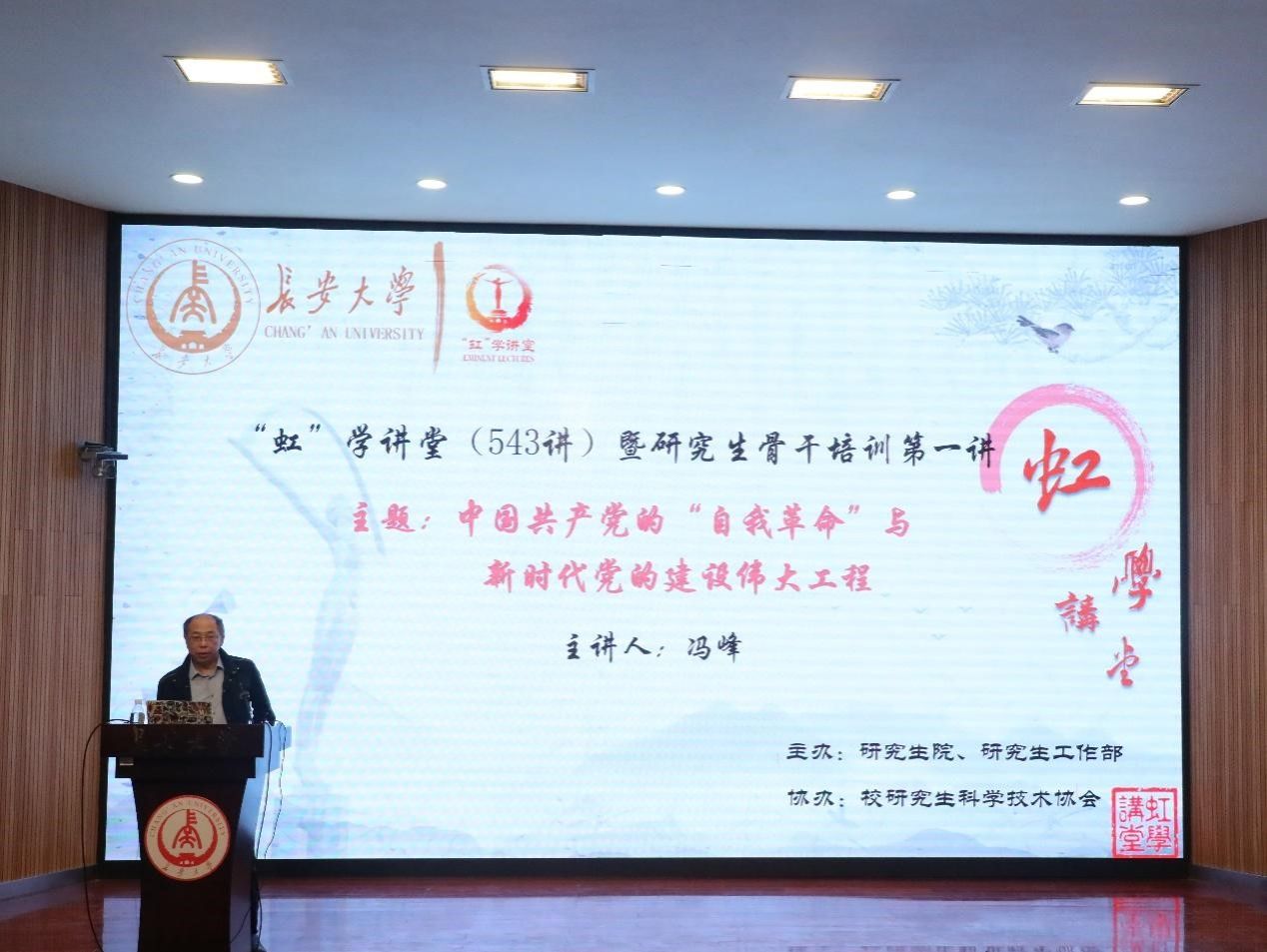 4月11日下午,由研究生院、研究生工作部主办,校研究生科学技术协会协办的“虹”学讲堂第543讲暨研究生骨干培训第一讲以线上线下相结合的形式举办。bat365正版唯一官网冯峰教授作了题为“中国共产党的‘自我革命’与新时代党的建设伟大工程”的报告,相关学院共280余名师生参加讲座。