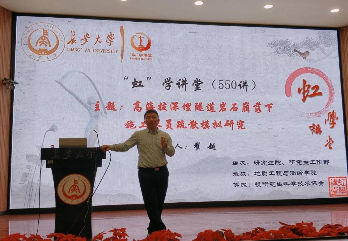 4月22日下午,由研究生院、研究生工作部主办,地质工程与测绘学院承办,校研究生科学技术协会协办的“虹”学讲堂第550讲在南校区东院伯声报告厅举办。bat365正版唯一官网翟越教授作题为“高海拔深埋隧道岩石崩落下施工人员疏散模拟研究”的报告,相关学院共200余名师生参加讲座。