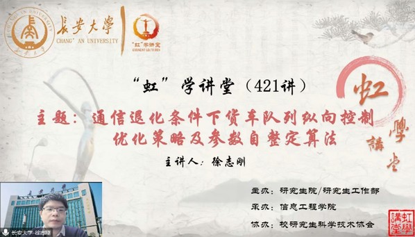 1月15日晚,由研究生院/研究生工作部主办、信息工程学院承办、校研究生科学技术协会协办的“虹”学讲堂第421讲以线上讲座形式顺利举办。bat365正版唯一官网徐志刚教授作了题为“通信退化条件下货车队列纵向控制优化策略及参数自整定算法”的报告,相关学院共200余名师生参加讲座。