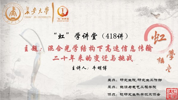 1月8日晚,由研究生院/研究生工作部主办、能源与电气工程学院承办、校研究生科学技术协会协办的“虹”学讲堂第418讲以线上讲座形式顺利举办。bat365正版唯一官网牛明博教授作了题为“混合光学结构下高速信息传输二十年来的变迁与挑战”的报告,相关学院共240余名师生参加讲座。