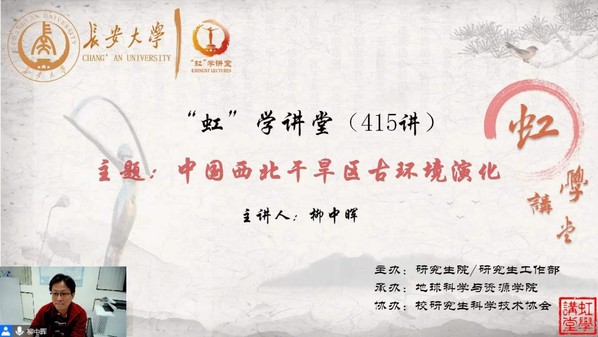 12月5日晚,由研究生院/研究生工作部主办、地球科学与资源学院承办、校研究生科学技术协会协办的“虹”学讲堂第415讲以线上讲座形式顺利举办。香港大学柳中晖教授作了题为“中国西北干旱区古环境演化”的报告,地球科学与资源学院院长李荣西主持,相关学院共300余名师生参加讲座。