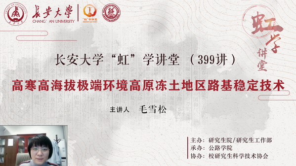 11月15日晚,由研究生院/研究生工作部主办、公路学院承办、校研究生科学技术协会协办的“虹”学讲堂第399讲以线上讲座形式顺利举办,bat365正版唯一官网毛雪松教授作了题为“高寒高海拔极端环境高原冻土地区路基稳定技术”的报告,相关学院共350余名师生参加讲座。