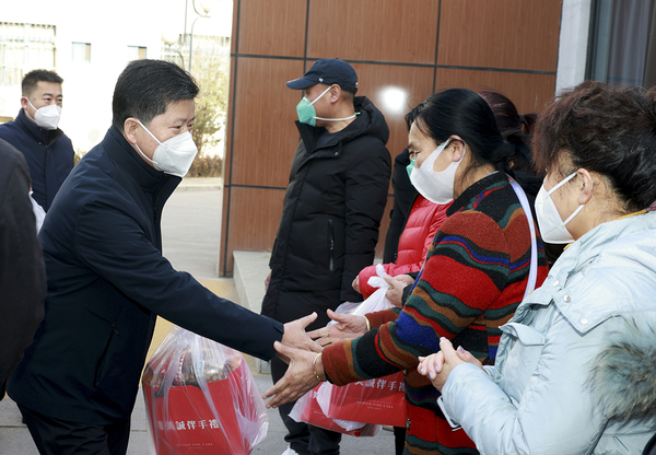 在看望慰问过程中,校领导代表学校党政对春节期间坚守在工作岗位上的教职工表示感谢。他们指出,过去的一年特殊又难忘,教职工在各自岗位坚守岗位、履职尽责,为师生防控疫情、筑起安全屏障,用心服务、建设幸福校园贡献了力量。他们强调,在喜迎新春佳节的同时,要强化安全理念、坚守安全底线、筑牢安全底板,认真落实好安全工作,全力保障校园安全有序运行,确保留校师生过上一个安全、祥和的春节。最后,祝福大家新春快乐,身体健康,阖家欢乐,并为大家送上了慰问品。