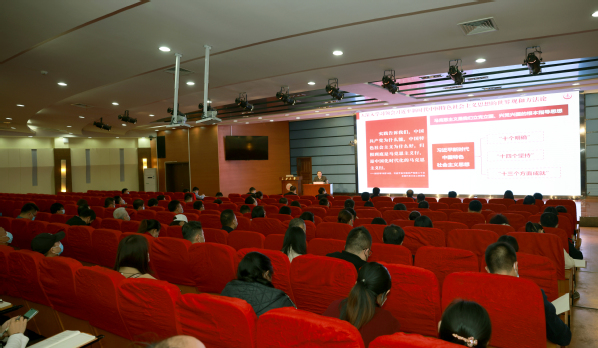 陈志坚从“如何认识?——学习领会习近平总书记重要讲话和党的二十大精神”“如何把握?——深刻理解教育、科技、人才一体部署的时代内涵”“如何落实?——以党的二十大精神为指引推动学校高质量发展”三个方面展开宣讲。他指出,党的二十大是在全党全国各族人民迈上全面建设社会主义现代化国家新征程、向第二个百年奋斗目标进军的关键时刻召开的一次十分重要的大会,是一次高举旗帜、凝聚力量、团结奋进的大会。学习宣传贯彻党的二十大精神是当前和今后一个时期学校的首要政治任务,要把学习宣传贯彻党的二十大精神同维护习近平总书记党中央的核心、全党的核心地位更好结合起来,进一步增强“四个意识”、坚定“四个自信”、做到“两个维护”。