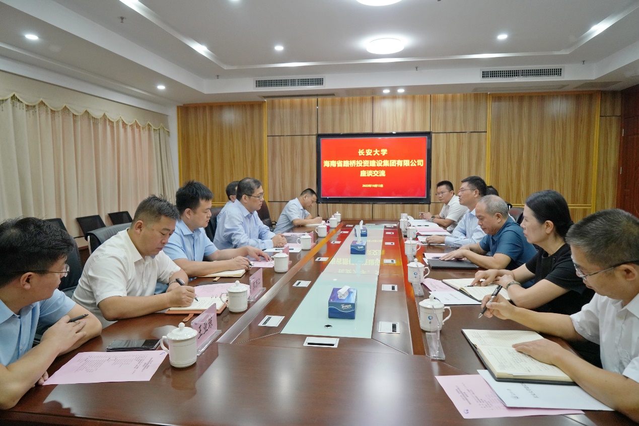 10月13日上午,沙爱民一行到海南省路桥投资建设集团有限公司调研座谈。海南路桥集团党委书记、董事长钟世祥出席座谈会。双方就紧抓海南省自贸港建设的历史机遇,开展全方位的产学研合作问题进行了交流。