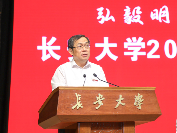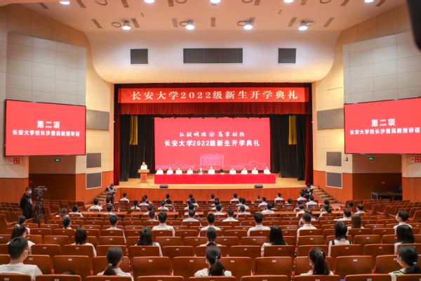 教师代表、信息工程学院王威教授发言,希望全体2022级新生心怀国之大者、厚植家国情怀,勇于承担时代赋予青年的历史责任,在奉献国家、服务社会的过程中实现个人价值。在校学生代表、公路学院2019级本科生王浩然发言,勉励全体2022级新生牢记党的教诲,不负时代重托,不忘初心、砥砺奋斗,收获更加精彩的人生。2022级本科生新生代表侯佳雯、研究生新生代表刘小熊先后发言,表示将秉承“弘毅明德、笃学创新”校训,珍惜韶华、勤勉为学,在实现中华民族伟大复兴的时代洪流中踔厉奋发、勇毅前行。