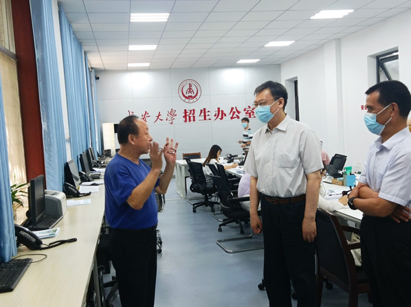 6月29日上午,校党委书记陈志坚,党委副书记、纪委书记孟德勇现场检查指导bat3652022年本科招生咨询及录取准备工作。