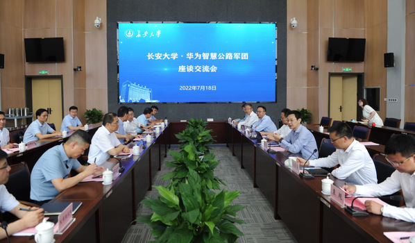 7月18日,华为副总裁、智慧公路军团CEO马悦一行来校考察交流,参观了公路交通博物馆、新型路面与加速加载研究平台及智慧道路展示区,并在师生服务大厅第一报告厅举行交流座谈会。校长沙爱民、副校长贺拴海、校长助理裴建中参加了交流座谈活动。