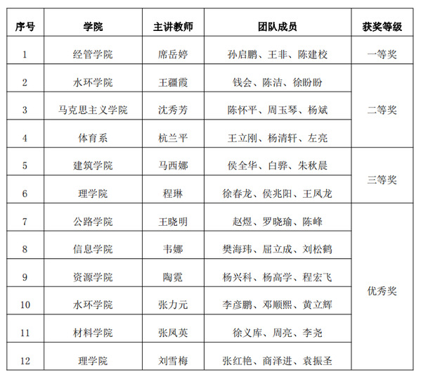 陕西第四届本科高校课堂教学创新大赛获奖教师(团队)