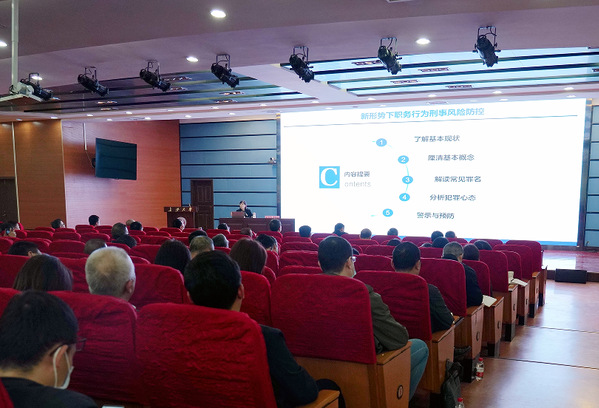 为切实加强学校领导干部廉洁教育、有效预防违纪违法和职务犯罪现象发生,推进学校全面从严治党向纵深发展,5月10日下午,学校邀请西安市人民检察院第九检察部主任、三级高级检察官张艳娟在北辰会议中心二层报告厅作了题为《新形势下职务行为刑事风险防控》的专题报告。校党委书记陈志坚出席报告会,校党委副书记、纪委书记陶继东主持报告会。