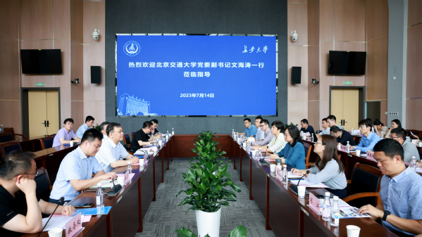 7月14日上午,北京交通大学党委副书记文海涛一行来校调研交流,校党委书记陈志坚出席座谈会。副校长范文主持会议,校长助理杜强及相关部门参加座谈会。