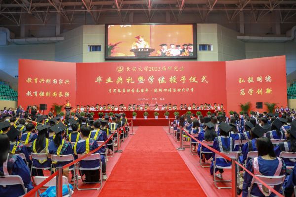 校长沙爱民代表学校和全体师生校友向圆满完成学业的153名博士研究生、3196名硕士研究生表示热烈的祝贺和美好的祝福,他以“奋力写好强国建设的青年答卷”为题发表讲话。他指出,求学的几年时光,同学们见证了党和国家事业发展的诸多关键节点,大家用辛勤耕耘、拼搏进取交上了沉甸甸的毕业答卷。他希望同学们主动肩负起伟大时代赋予的光荣使命,回答好“强国建设,青年何为”的时代课题,在新时代打开人生成长新天地,书写大有可为、大有作为的青春华章。沙爱民勉励2023届研究生毕业生要以求学报国的大志向回答好中国之问,要以胸怀天下的大格局回答好世界之问,要以与民同心的大情怀回答好人民之问,要以理性自信的大智慧回答好时代之问,并在此过程中奋力写好强国建设、民族复兴的青年答卷。