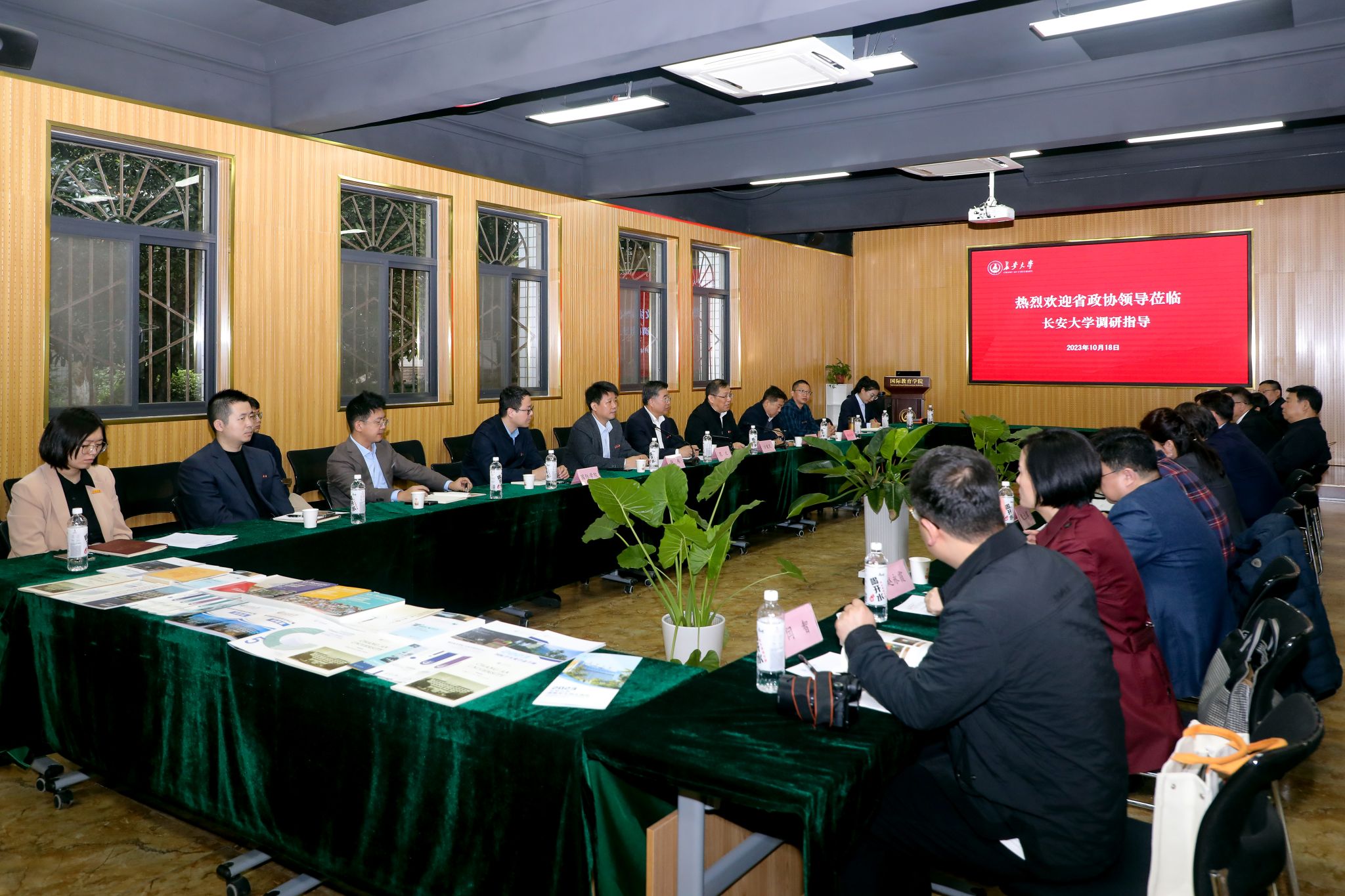 10月18日,陕西省政协副主席孙科、省政协常委/教育科技委员会主任薛建兴、省政协教育科技委员会专职副主任张北京以及省政协部分委员、专家到bat365调研国际教育工作并召开专题座谈会,座谈会由副校长范文主持。会前,校长沙爱民、副校长范文在南校区贵宾室会见孙科一行。