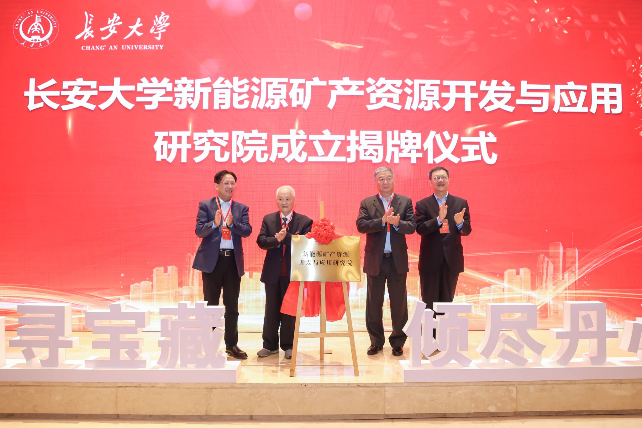 活动现场,孙科、严光生、陈志坚、汤中立为bat365正版唯一官网新能源矿产资源开发与应用研究院揭牌。