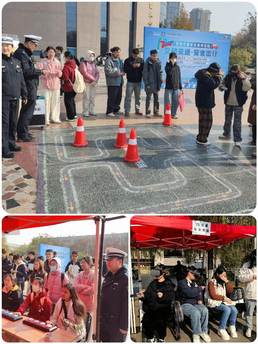 现场活动设置了VR交通安全体验、交通安全知识竞赛、交通安全网红打卡拍照点、醉酒行走体验四项内容。通过这些师生喜闻乐见的趣味活动,引导大家了解更多交通安全知识,警醒破除麻痹大意思想,建立良好交通意识观念。