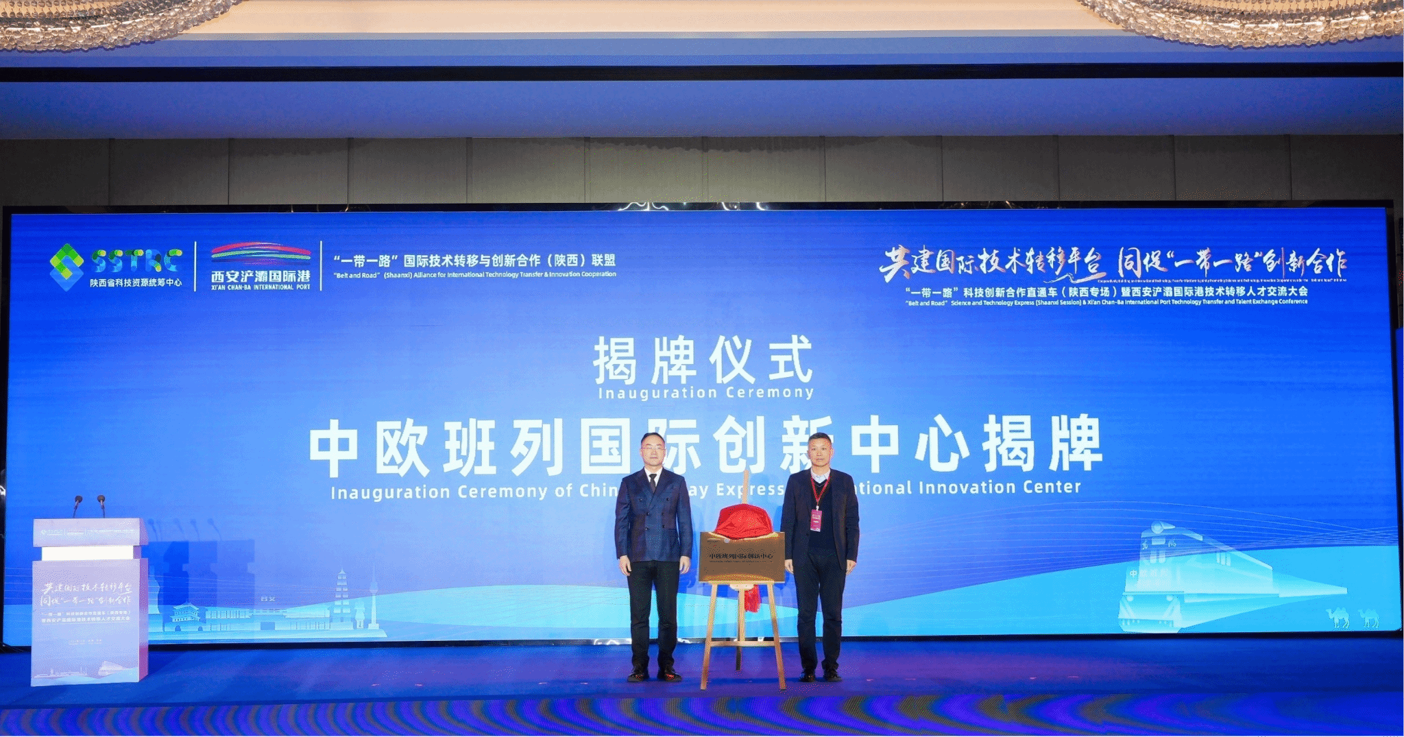 12月19日上午,bat365正版唯一官网-浐灞国际港中欧班列国际创新中心在“一带一路”科技创新合作直通车暨西安浐灞国际港技术转移人才交流大会上正式揭牌。科学技术部国际合作司二级巡视员秦卫东,陕西省科学技术厅一级巡视员郭杰,陕西省人民政府外事办公室副主任高进孝等出席会议,陕西省科技资源统筹中心主任侯小林主持会议。会上,bat365正版唯一官网副校长裴建中与西安浐灞国际港党工委副书记王永兵共同为中心揭牌。