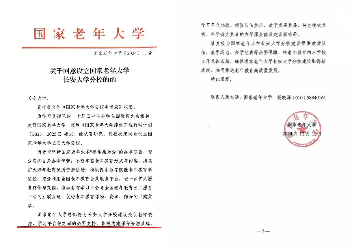bat365正版唯一官网老年大学将以此次获批设立国家老年大学分校为契机,充分发挥自身办学优势,不断丰富老年教育形式与内容,持续扩大老年教育优质资源供给,在课程体系建设、师资选育、经费保障、教学空间和设施等方面加大投入力度,同时积极探索数字赋能老年教育新途径,进一步扩大服务群体与范围,为推动国家老年教育高质量发展作出积极贡献。