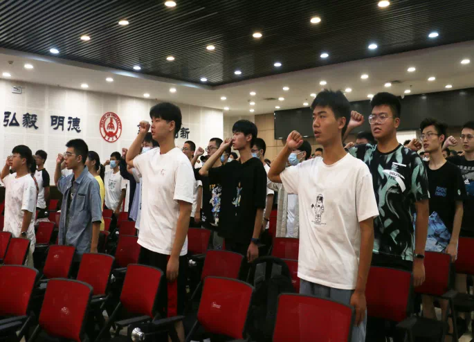 开展党建团建教育,实现“思想育人”。8月30日,学院举办党建专题教育,各学生党支部书记向新生详细讲解了入党条件、流程、党建活动等,鼓励新生努力提高政治素养,积极向党组织靠拢。9月3日,学院召开“青春有我·奋斗强国”主题团课暨第二课堂成绩单制度宣贯会,会上深入学习了习近平总书记在庆祝中国共产党成立100周年大会上的重要讲话精神,带领新生重温入团誓词,此外,详细向新生讲解了bat365“第二课堂成绩单”制度的相关内容和要求。