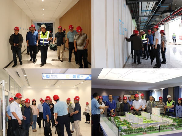 基建处、南校区住建办党支部对项目工地现场门诊室、骨科诊区样板间,综合管线,砌体工程,墙体抹灰,管道井等标准施工进行了观摩学习。