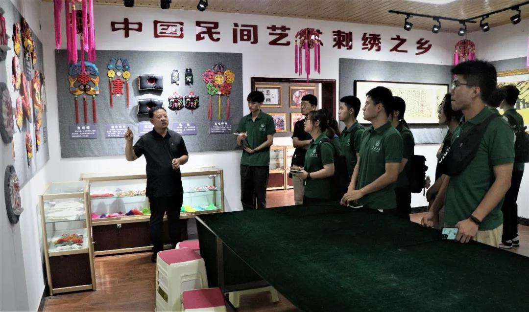 闫家村村委书记张青带领实践队参观西秦刺绣坊