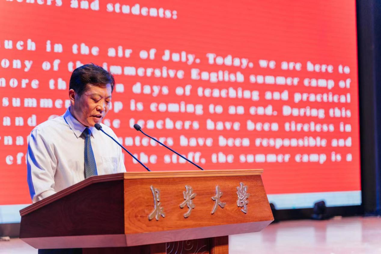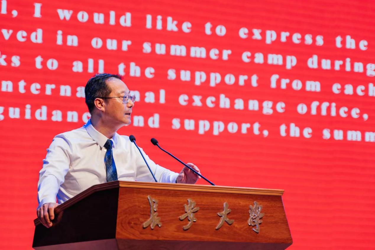 国际合作与交流处处长蒋在文为闭幕式致辞,他表示,此次长安都柏林国际交通学院举办的“浸入式英语夏令营”,在传承的基础上不断创新,将丰富多彩的主题式课堂教学和形式多样的课外拓展活动紧密结合,将多元的国际文化知识与艺术形式相融合,党史情景剧、国际舞蹈、歌曲、主题演讲等活动设计新颖,异彩纷呈,极大提升了学生的英语沟通能力及团队合作能力。